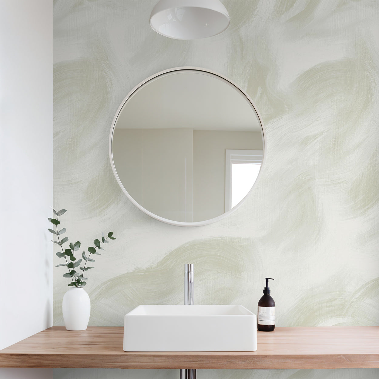 This brushed canvas wallpaper adds a quiet note of luxury, layering soft cream and sage hues into an ethereal, nature-inflected composition. The refined texture evokes the patina of artisanal plaster, bringing depth and architectural softness to the walls. Effortless and elevated, it sets a serene yet sophisticated foundation worthy of a thoughtfully designed interior.