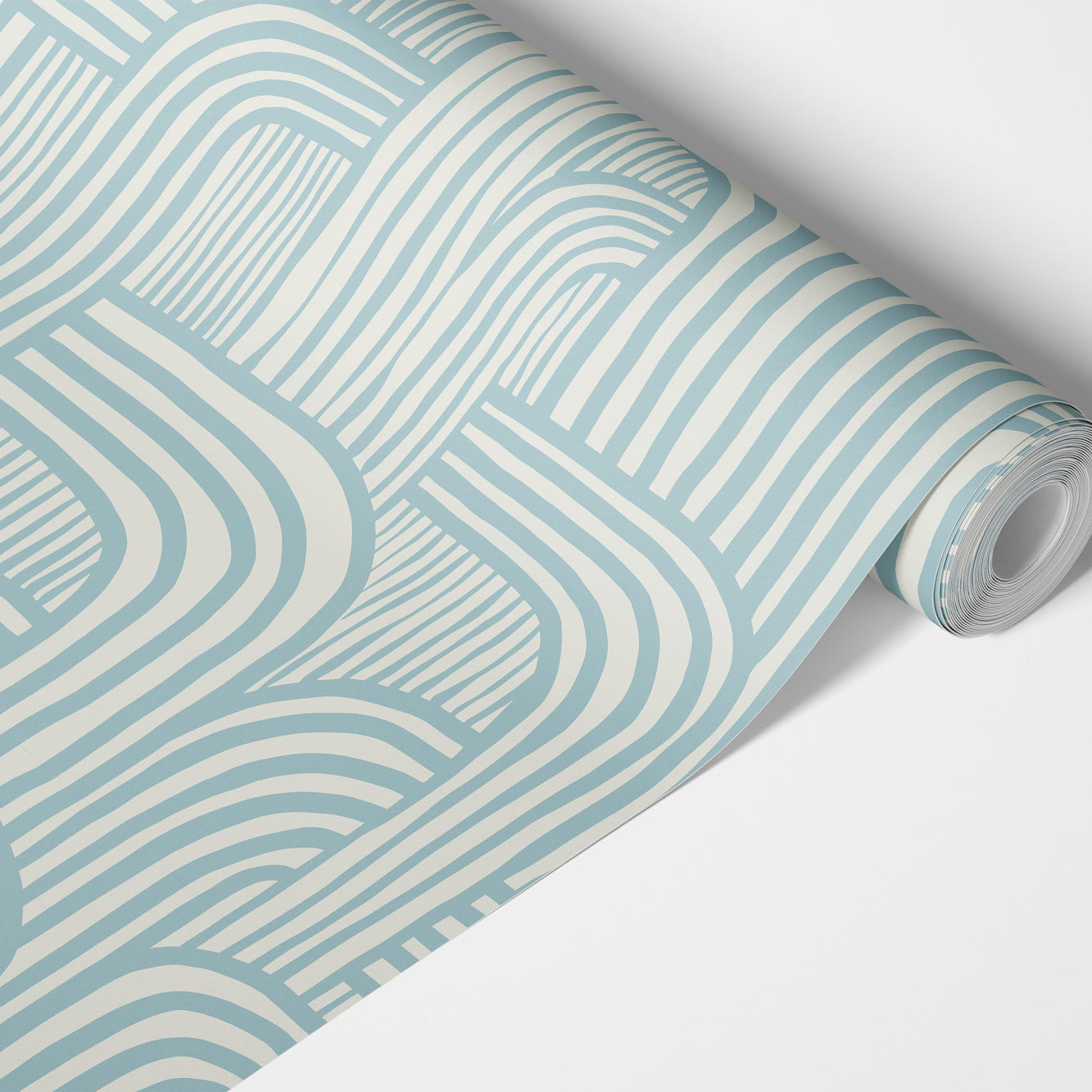 This waterfall-inspired wallpaper combines inspiration from nature together with its twist of abstract artistry. With calming tones of blue and soft beige, it adds both texture and serenity to any room. A contemporary design that makes a perfect accent wall in your living room.